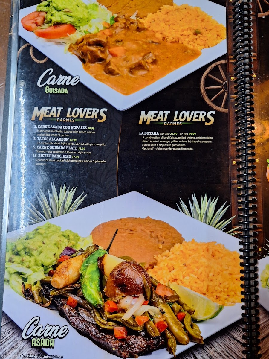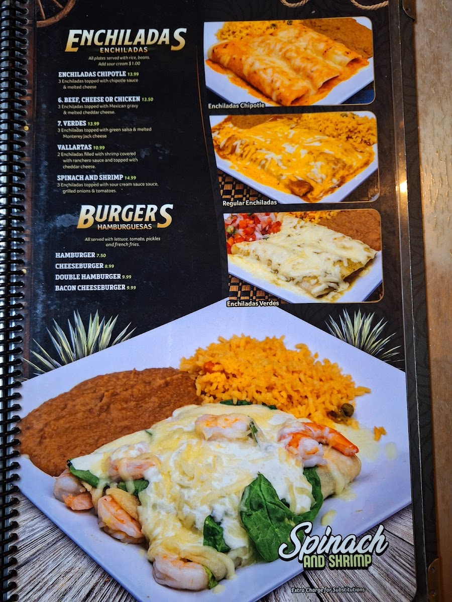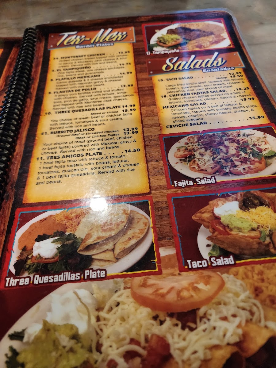 This menu is suitable for casual dining throughout the day, with offerings that cover breakfast, lunch, and dinner. It accommodates quick orders as well as more leisurely meals, providing familiar, well-established Mexican and Tex-Mex dishes.